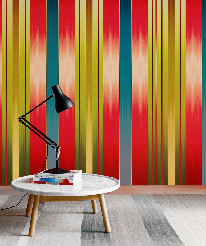 Newmor’s new collaboration brings Ptolemy Mann’s signature ikat prints and hand-woven design to commercial wallcoverings market with a collection of fabric backed vinyl wallcovering designs.