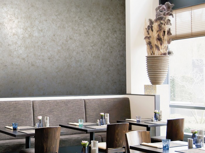 Vintage moody silvers, aged gold and tarnished aluminium colours with flashes of metallic foil highlights make this a wallcovering of choice.