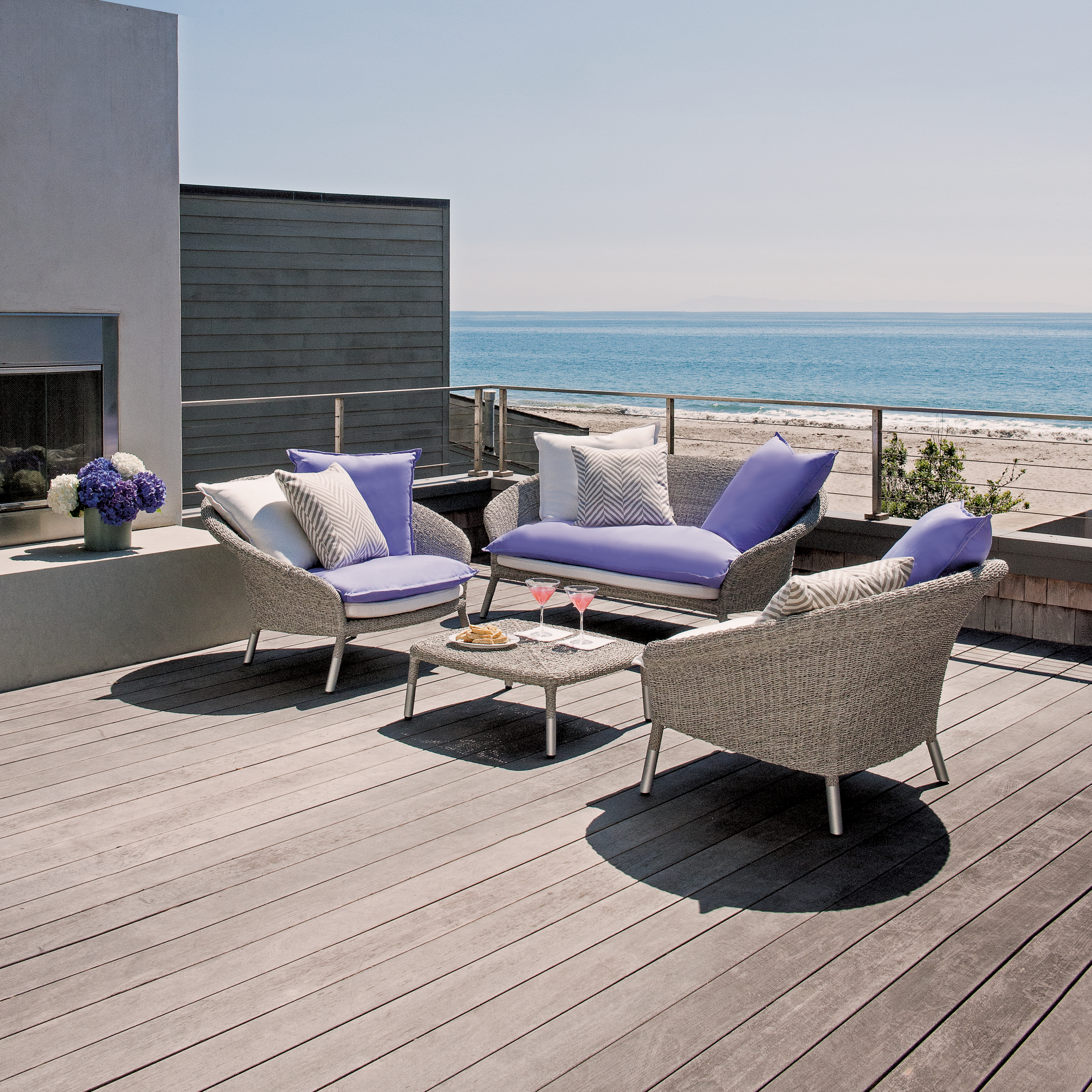 The Strada Collection is comprised of nearly a dozen pieces with the emphasis on European inspired low, relaxed seating: Lounge Chair, Ottoman, 2-Seat Sofa, High Back 2-Seat Settee, 3-Seat Sofa and Chaise Lounge. A Pouf Side Table, Cocktail Table and Grande Cocktail Table can be transformed into an ottoman to outfit the lounge series. The hand woven seats and backs, made from JANUS et Cie’s acclaimed JANUSfiber, come in Willow, Sage, Dapple and Taupe. Notably, the high-back 2-seat settee is wonderful for hospitality environments such as a hotel lobby or bistro dining. The durability of the collection is superb for high-traffic and communal corporate spaces indoors or out.
