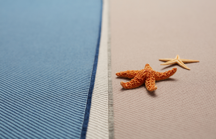 Today, we’ve adopted the circular principle for the key ingredient in our X2, Gravity and Halcyon Cedar fabrics. Here, we’ve partnered with our polyester yarn supplier who takes back our polyester fabric selvedges and yarn cone remnants, then upcycles them back into yarn which we incorporate – up to 25% – in new woven fabric. Many of our polyester fabrics – including top sellers Xtreme, Lucia and Rivet – are made from 100% post-consumer recycled PET from waste plastic bottles. And we’ve taken our fight against plastic pollution one step further in 2020 with the launch of Oceanic.