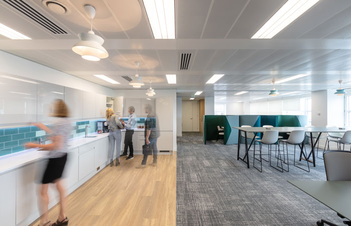 ‘It was important to give the new space a heart and so we opened up the central area and created a kitchen and dining space, together with a breakout area and touchdown space with one high table and one low – for working, eating and playing’, Gurvinder added. ‘The client had really discovered how useful a breakout space was for internal company culture at its previous Air Street premises.’