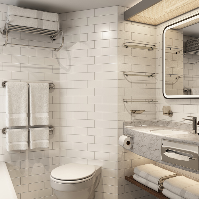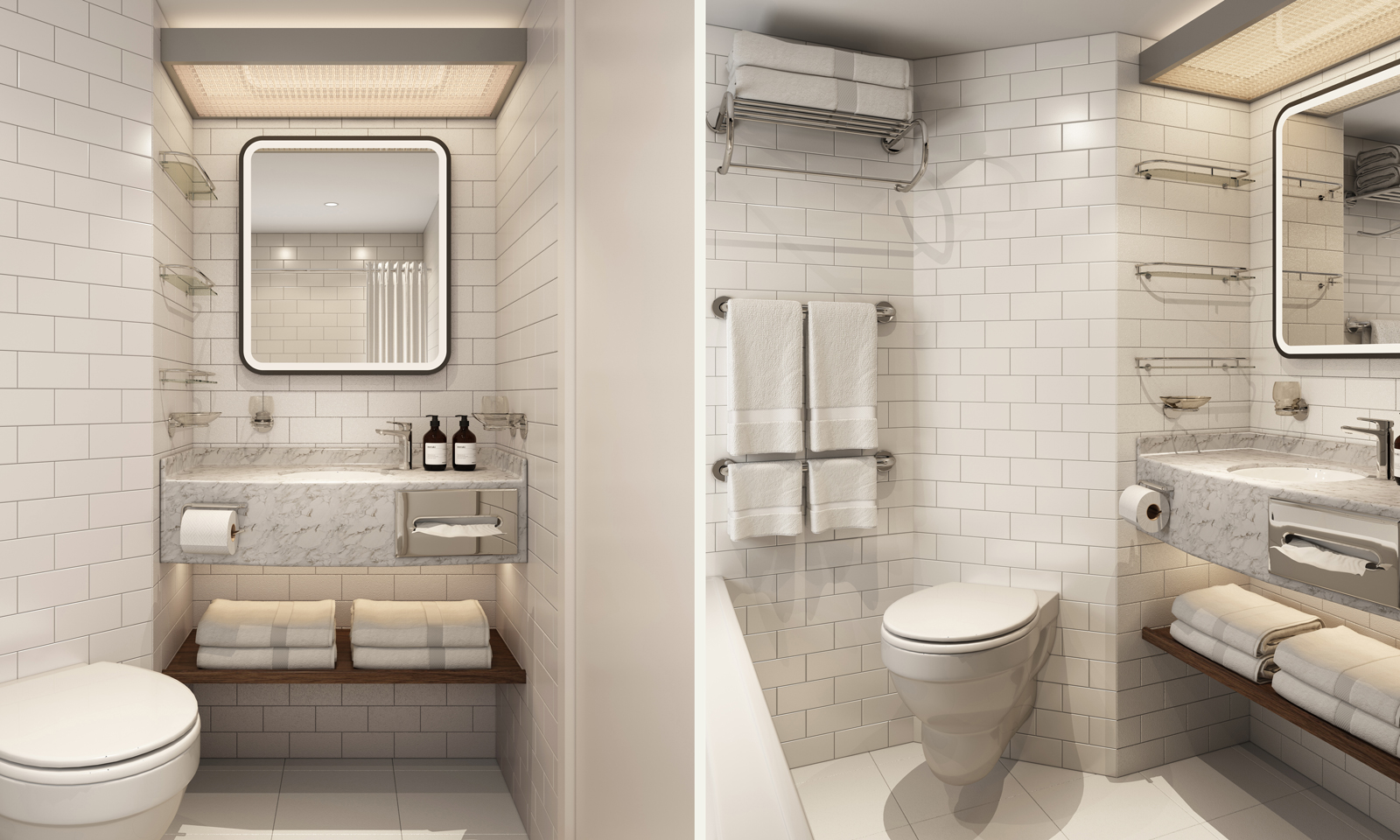 The project was delivered in two distinct phases, with global coordination across two dry docks. The first dry dock took place in Singapore, where 80 guest cabins were refurbished. The second phase followed in the Bahamas, completing an additional 69 cabin bathrooms. Both phases were executed with speed and efficiency, minimising downtime for the cruise liner.