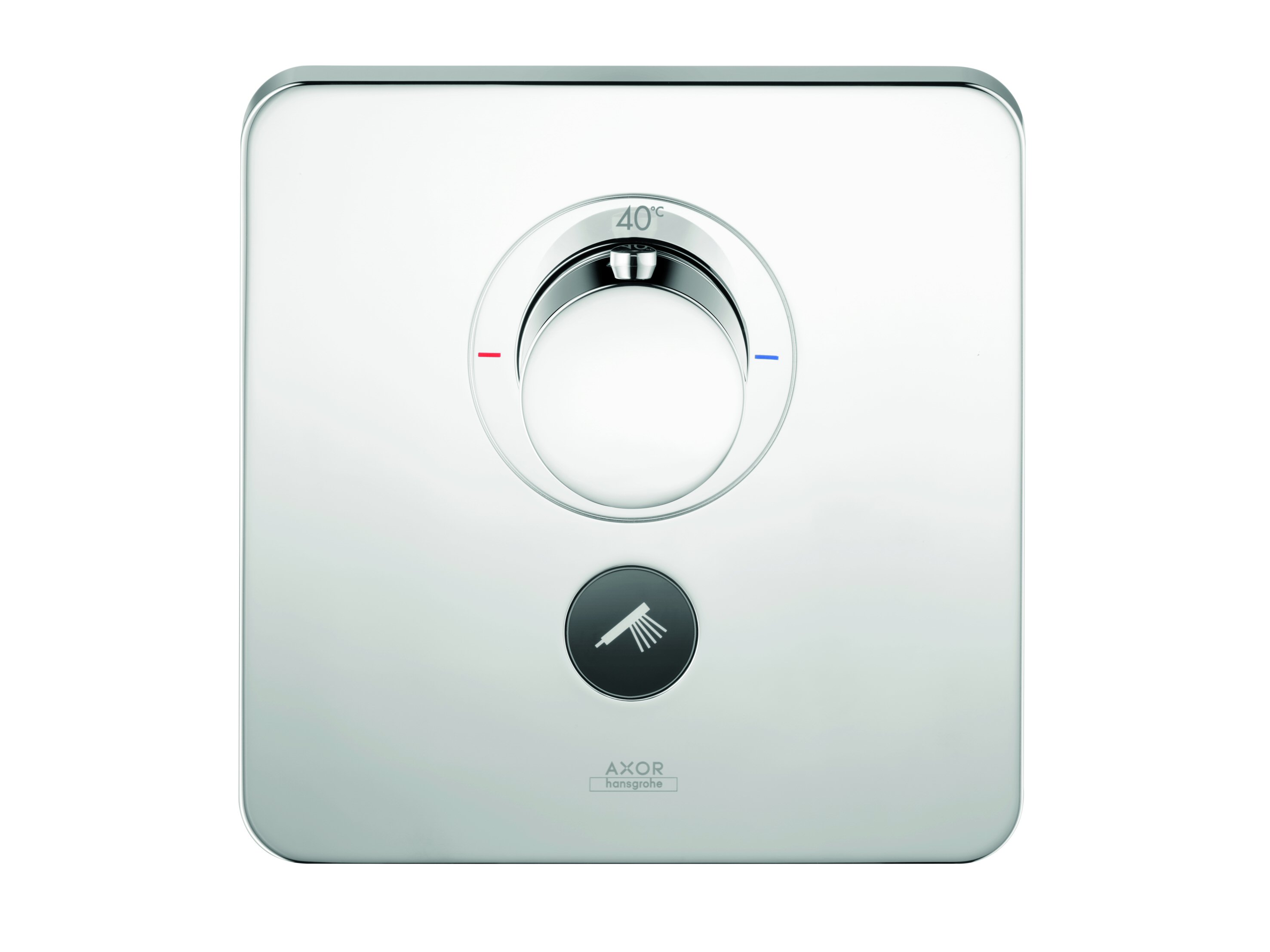 Axor ShowerSelect – The Axor ShowerSelect thermostats guarantee a user-friendly and comfortable high performance showering experience. Available in three shapes – square, round or Softcube (shown), the thermostats as well as overhead and hand showers are equipped with intuitively elegant ‘Select’ buttons to switch between different showers.