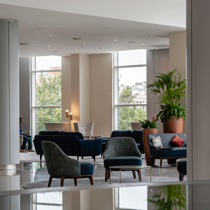 The project was completed in three phases, encompassing the buzzy restaurant and bar, meetings and events space and the large lobby area.