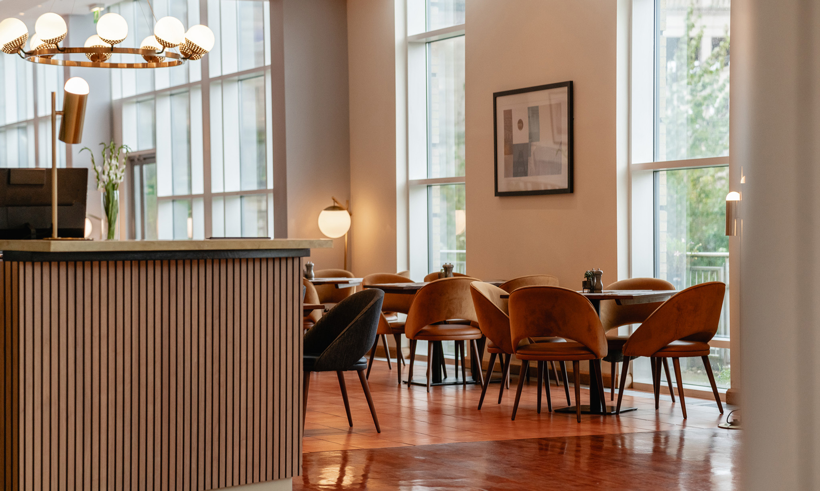 The new-look lobby makes a great first impression on guests arriving at the hotel. It is bright, spacious and is dominated by full height glazing that showcases the Tyne Bridge and river outside. Furniture Fusion supplied both their Atlas lounge chair and sofa, which sit perfectly alongside the Circuit coffee table. This creates smaller seating zones with a warm and welcoming atmosphere for guests as soon as they enter. Also in the lobby is the Bellevue high back lounge chair, which is positioned in an appealing spot to relax and enjoy the riverside views.