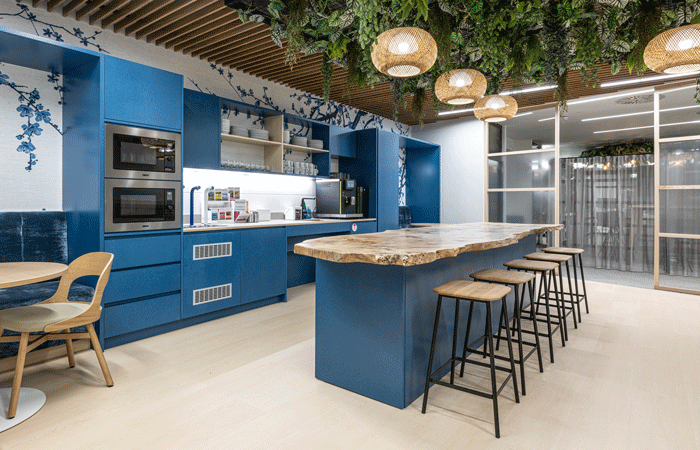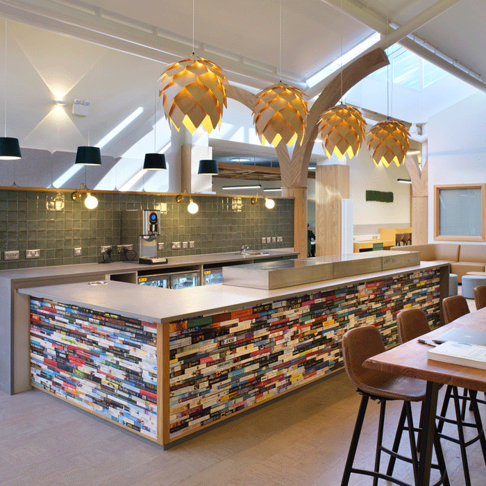 For example, in the Cadent Ansty project, we sourced 73% of materials locally — a commitment that earned us a BCO award for ESG excellence. We also love working with suppliers like Fallen & Felled, who repurpose felled council trees from London into stunning joinery pieces. For our NTT project, we transformed a London plane tree into a beautiful breakout bar.