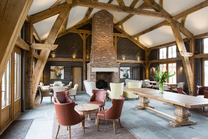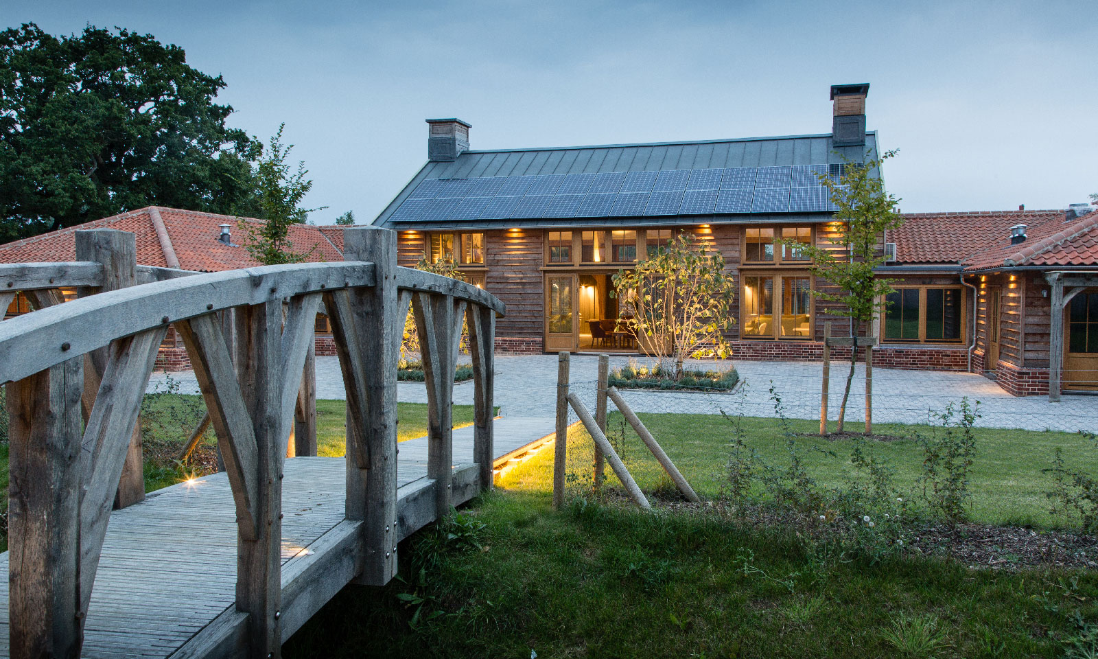 The Retreat East farm prioritises environmental sustainability. Situated seven miles north of Ipswich and around a 30-minute drive to the Suffolk Coast and Heaths Area of Outstanding Natural Beauty, its 43 newly built and restored barns are made of eco-friendly materials and incorporate solar panels and air-heat exchange technology.
