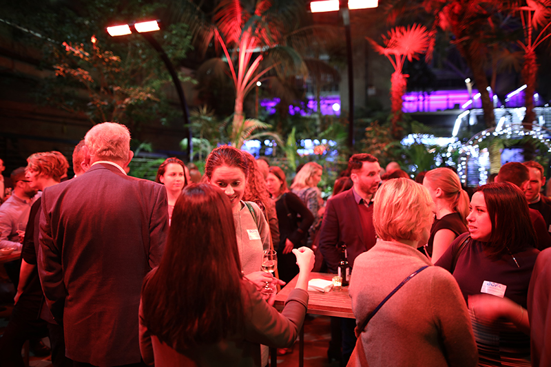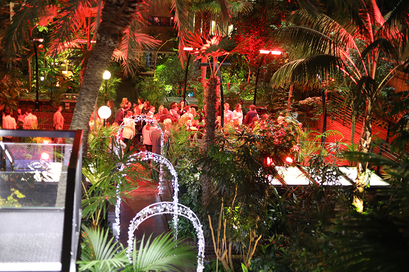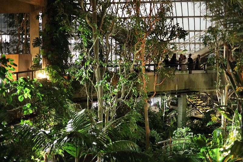 Drinks were served upon arrival, followed by a selection of delicious foods later in the evening. There was a lively atmosphere in the conservatory where guests were in awe at the stunning venue – A brutalist concrete building with its very own hidden tropical oasis. It was truly enjoyed by everyone and the feedback to the BCFA was great! The guests mainly gathered in the patio area of the conservatory, but some guests crept off to explore the other areas and levels of the conservatory throughout the night.
