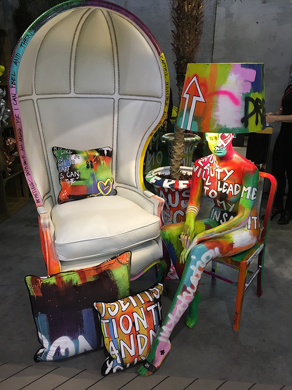 We met designer Jimmie Karlsson, Creative Director at Jimmie Martin, who had a couple of commercial interior design projects in his portfolio. His eye-catching stand showed customised objects in his signature (sometimes controversial) style.