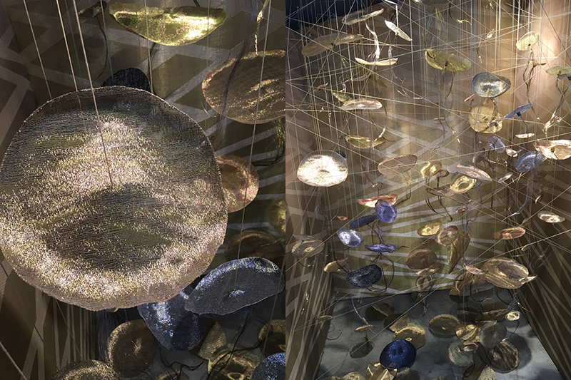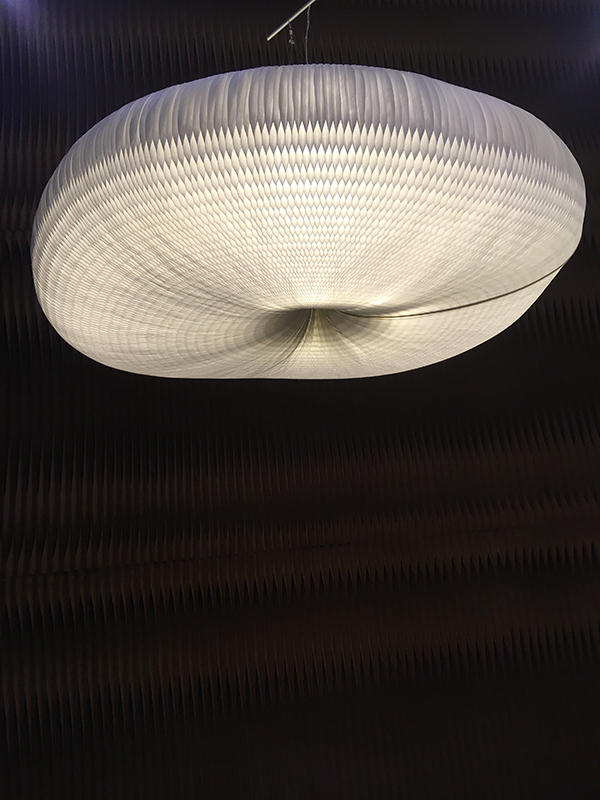 LCD Textile were showing a metal woven fabric and exploited the mouldable structure of their product to create an impressive display box of ‘jellyfish’.