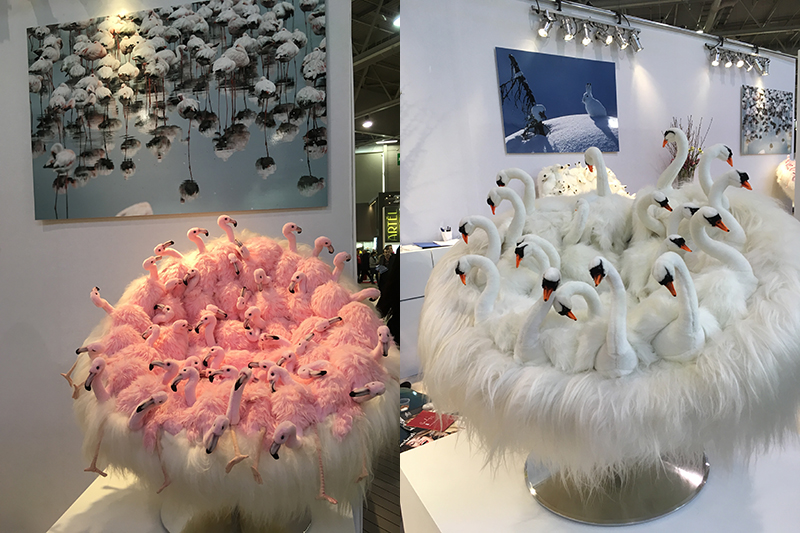 The most fun item from the show for us was the AP Collection who had created seating with a ‘Cuddles & Affection’ theme. Each seat is handmade in Belgium and combines a chair stuffed with cuddly toys. Most humorous and stand out to us were the flamingo and swan themes, which actually looked more ‘beaky’ than comfortable but were nonetheless great fun!