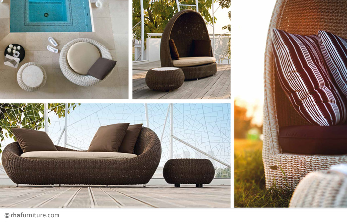 Relaxia, Sand and Delfino offer a good selection of stylish sun and poolside loungers, all available in a Coloniale white or Dark Java brown weather resistant weave.