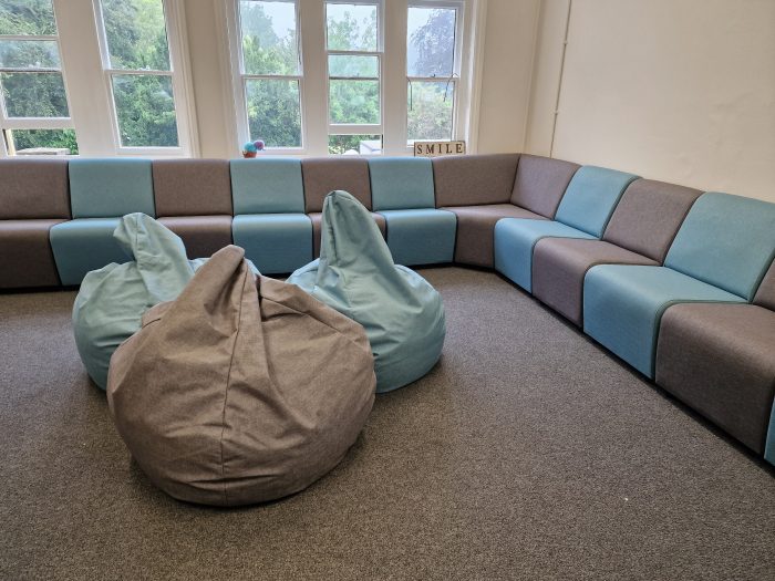 Schools have been another prime example of a set of outdated assumptions about what appeals to children and Rhubarb had puzzled for many years over the fact that so little attention seemed to be paid to children’s comfort in the classroom. The rigid chairs, hard edges and bright colours didn’t add up to settings likely to make them feel at ease nor did they seem conducive to creating the best learning environments. And that is without bringing into consideration the purely physiological effect on posture and strength of poor seating.