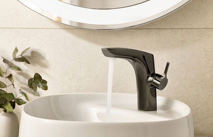 There are now eight colour finishes available including, Titanium Black, Rose Gold, Gold and Chrome, which are all also available in a brushed finish to create a softer, muted look. The Everlux coloured finishes will be available for selected brassware lines including Insignia, Naia and Escuadra.