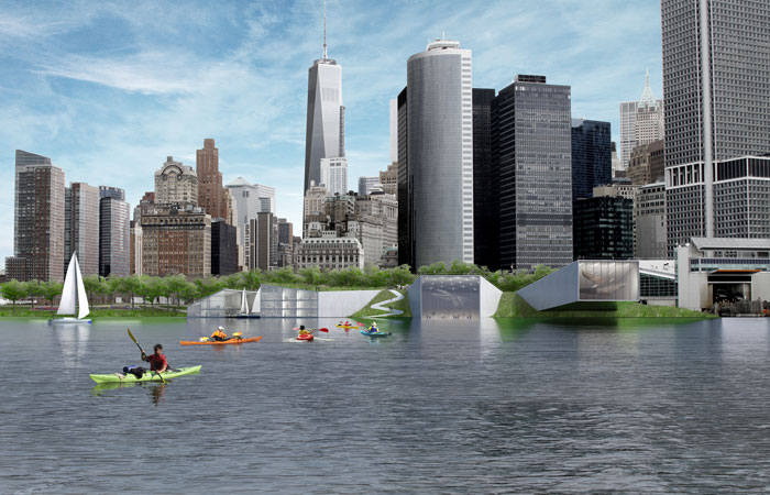 The exhibition will also look at flood resilient solutions that take into account our enjoyment of living close to water, be it the sea or a river. Examples include BIG’s winning scheme for a flood defence and public park to prevent the extensive flooding experienced by Lower Manhattan during Hurricane and Zaha Hadid Architects’ sculptural Niederhafen River Promenade in Hamburg. The latter replaces one of the city’s deteriorated flood barriers, built in 1964 in the aftermath of storm surge floods that caused 315 fatalities and destroyed 60,000 homes. The design incorporates amphitheatre-like staircases, a 3-storey restaurant and shops at street level, proving that flood infrastructure can open up new public space and riverside walkways.