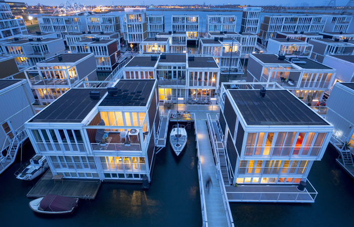 In the floating solutions category, Marlies Rohmer Architects’ Floating Houses IJburg, completed in 2015, have proved to be highly successful. Situated on a lake east of Amsterdam, Rohmer’s original scheme for 158 homes has since been expanded and will ultimately constitute 18,000 units, housing 45,0000 people.1