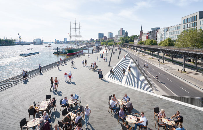 On site now is HafenCity in Hamburg by urban planner KCAP. It represents Europe’s largest inner-city redevelopment project and is located in the Elbe river’s flood zone, so concepts for flood prevention have had to be integrated right from the start.