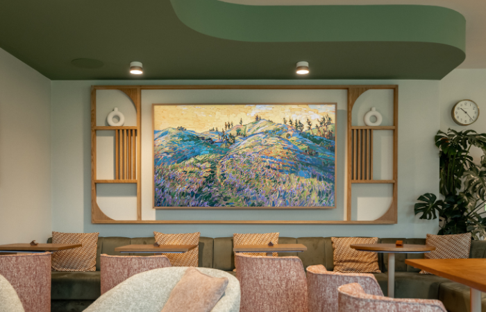 The Club benefits from 40 hectares of beautiful natural land, influencing DLSM Studio’s design narrative, ‘Moments of Calm, for a Lifetime of Energy’, taking inspiration from the Club’s verdant setting and historic role as a retreat from city life. The interiors now offer a sophisticated blend of tactile materials, curved forms and biophilic cues allowing the space to transition seamlessly from day to evening use.