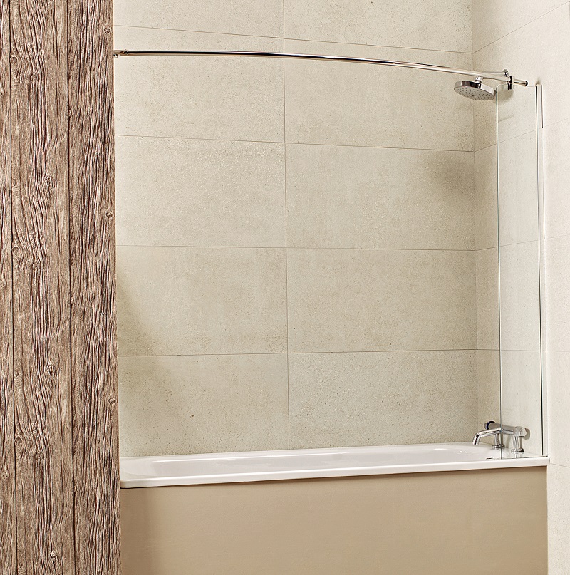 Roman have added an ingenious curved curtain rail for their 8mm thick glass Mini Fixed Bath Screen that cleverly bows out to move the shower curtain away from the showering area to give a more comfortable and spacious showering experience. By designing the curtain rail with a slight curve it encourages the shower curtain to bow out to provide you with more space when showering and to keep the curtain away from you.
