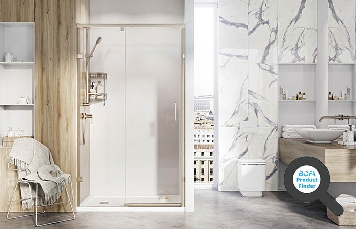 Roman’s polished nickel finish has been introduced into their Liberty collection of hinged and sliding doors alongside silver chrome, brushed nickel and matt black.