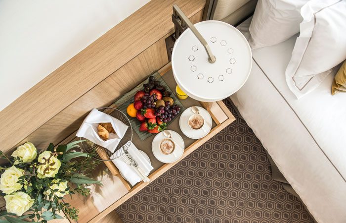 O’Donnell Furniture were selected to manufacture bespoke fitted furniture to all of the beautifully refurbished bedrooms and suites, including wardrobes/minibars, headboards, desks and fitted seating next to desks, console tables, wall panels, mirrors, vanity units and sliding doors to bathrooms.