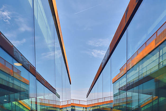 6m tall glass panels face the outdoor courtyard, allowing natural daylight into the four exhibition spaces.