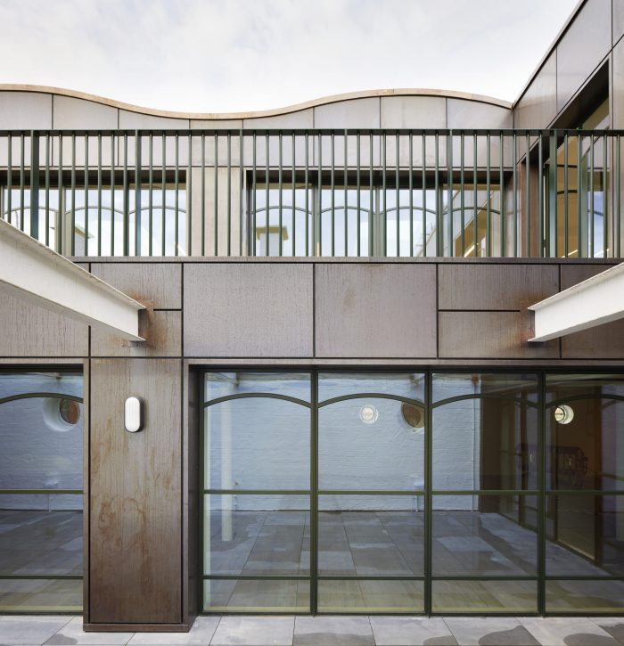 Extensive facade refurbishment includes the white glazed brickwork, and replacement and restoration of all windows, which reference the original ‘Voysey Green’ metal coating discovered beneath layers of black paint; This colourway is echoed throughout the building. The original pitch pine flooring has been painstakingly restored to reveal the soft, pale tones, unique in 1902, compared to the tradition for dark stained woods.