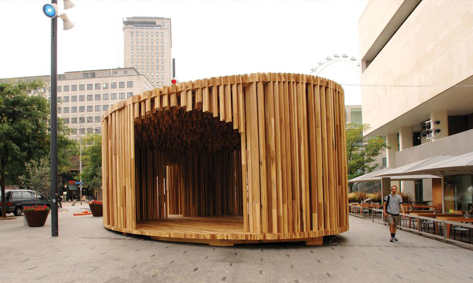 “We are delighted that Sir David Adjaye OBE has selected Sclera as one of the monuments to be included in the design Museum’s exhibition. Sclera was our first structural experiment with American tulipwood, as well as our first collaboration with the London Design Festival. We have since gone on to push the species’ boundaries through research and various other landmark projects with LDF,” says David Venables, European Director of AHEC.