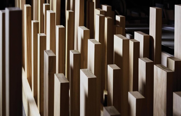 “Making the Sclera structure for the David Adjaye Show at the Design Museum gave us an opportunity to use American Tulipwood at scale and in a really beautiful installation,” says Sean Sutcliffe, founder and MD of Benchmark, the company that built the structure for the Design Museum show. “We always welcome the opportunity to make things with Tulipwood, not just because it works really well, both machining and handwork are a joy, but significantly because Tulipwood is a massively undervalued resource. It is plentiful in the North American forests, fast growing and highly sustainable as a material. It has good strength to weight properties and good stability. Quite why it has been historically so undervalued is a mystery to me, but at this point in time it is a good value hardwood.”