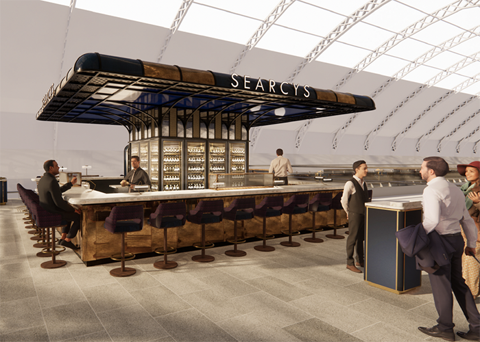 Searcys operations director Allan Heard comments, “To celebrate Searcys’ 175th anniversary this year, we feel it is more than fitting to revamp the iconic Champagne bar and the gateway into London and the UK at St Pancras International. With Victorian elegance at heart, we are looking at more flexible and varied configuration of seating – from comfortable nooks for two to spaces for larger parties and celebrations. At the bar, we are putting more prominence on our signature drink, Champagne, to showcase our extensive selection of bottles and magnums, plus our ‘Press for Champagne’ buzzers are here to stay. We are also putting more focus on the food, with a brand-new seafood bar at the centre of the redesigned bar, perfect to raise a glass with friends and family and as a fizz pitstop for Londoners and beyond.”