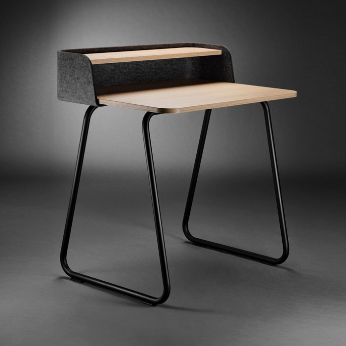 Sleek design, clear lines and an organic shape: Secretair home stands out due to its light, uncluttered appearance. With its compact dimensions it even fits into the smallest niche. A shelf is integrated into the felt frame to accommodate pens, notes or a calendar.