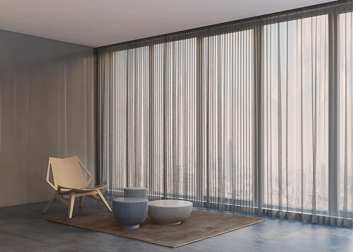 add a hint of personality when used in an interior space, it adds a textural element to the room which will not go unnoticed. The supporting plain wide width sheer, is composed of 100% recycled polyester, making this collection the ideal choice for the environmentally conscious designers specifying for the hospitality and