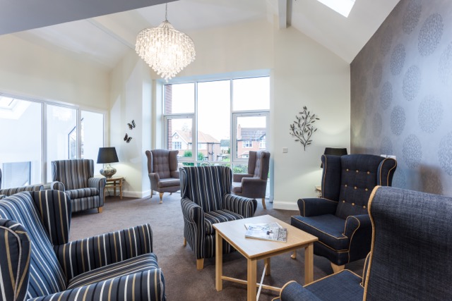 Maintaining the quality feel, bespoke fitted bedroom furniture and wall mounted media panels were designed and manufactured for 48 private rooms. The three communal lounges were furnished to create an individual ambience and private seating areas were also created away from the main lounges to offer quiet spaces for residents to sit comfortably in solitude.