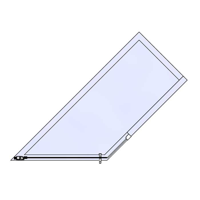 These images highlight the design problems that the Roman designers encounter. The designers have maximized the active showering area but the layout of the bathroom and walls mean that the shower is not a recognizable shape or size – and clearly walls cannot be moved. Therefore the solution was to make a special sized Shower Tray in Roman’s solid surface moulding plant. The moulds are quick to manufacture and relatively low cost due to the volumes involved. The RomanStone material is naturally anti-slip so is ideal for hospitality and cruise ships. The Shower Enclosure is essentially missing one side due to the wall and also the fixing point for the Door is at 45 degrees. This required Roman to design a new wall profile in our aluminium extrusion plant which is again completely bespoke to the project.