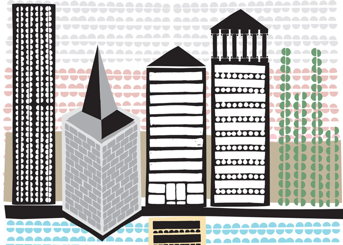 Blocks is a bespoke design for a global corporate accountancy business which has views directly over Tower Bridge and the City skyline. This design is formed from a hand printed pattern of the view with the bridge platform opening and the myriad of windows and reflections on the river from the city skyscrapers and historic buildings.