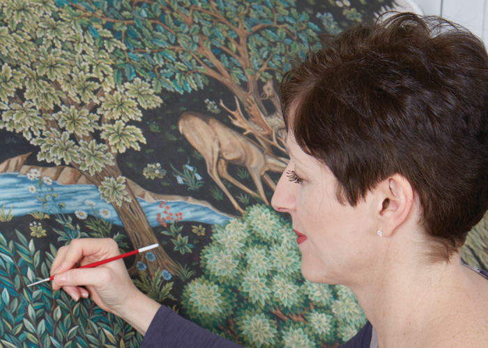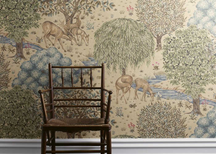 For Morris, tapestry was the highest form of decorative fabric. Inspired in part by the Brook Tapestry by J. H. Dearle and the friezes that sit beneath the Holy Grail Tapestries, THE BROOK was newly created in 2015 and painted out by hand taking over 2 months. Digital printing recreates all the crispness and abundance of beautiful detail, which was the special characteristic of medieval tapestries.