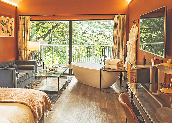 The joyful, nature-inspired Treehouses are lofty and playful and look out across the rolling landscape. They can house up to six and play host to a freestanding Barcelona bathtub, private deck and outdoor spa bath.