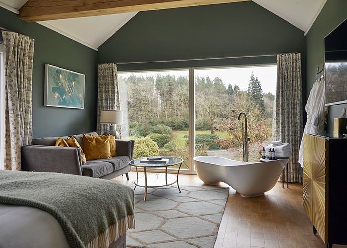 The Retreats are spectacular cedar-clad cabins, acting as the ultimate rural bolthole. Interiors offer simple and understated design with clean lines and contemporary furnishings, framed against floor to ceiling windows that look out on the woodland estate. All retreat rooms have super-king-size beds with sunken indoor bathtubs and an outdoor spa-bath so guests can gaze upwards at the starlit sky whist winding down in the evening.