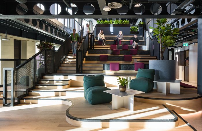 Challenges included incorporating the different needs of each type of operation (i.e. the contact centre and corporate teams); creating connection between colleagues split over so many floors; connecting the floors, and employing the huge number of different finishes, joinery types and furniture that would be needed, based upon the differing concepts for each floor.