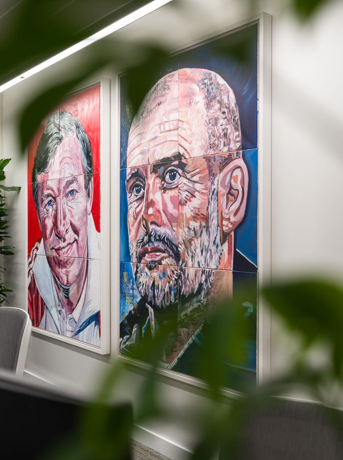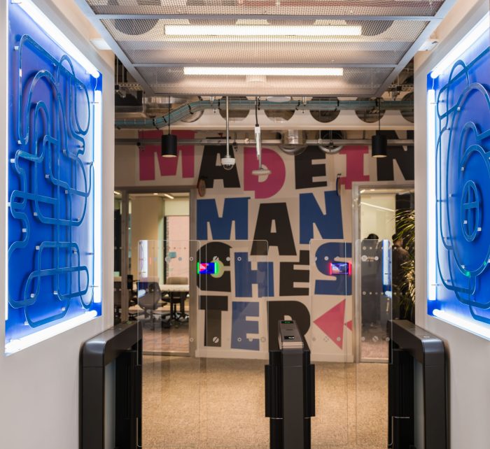 The visual identity of each floor is rooted both in Manchester’s cultural DNA and the synergies between each floor’s concept and the Virgin Media O2 brand ethos. In each case, the design has gone way beyond the cliché. The sports floor for example, could easily have been reduced to a focus on the city’s red and blue football teams, but additionally references skateboarding, tennis and rugby instead – especially with O2 being the England rugby sponsor for both the men’s and women’s teams.