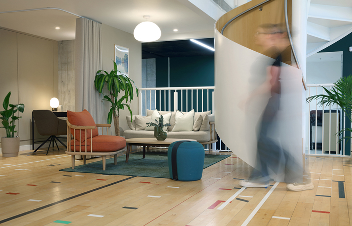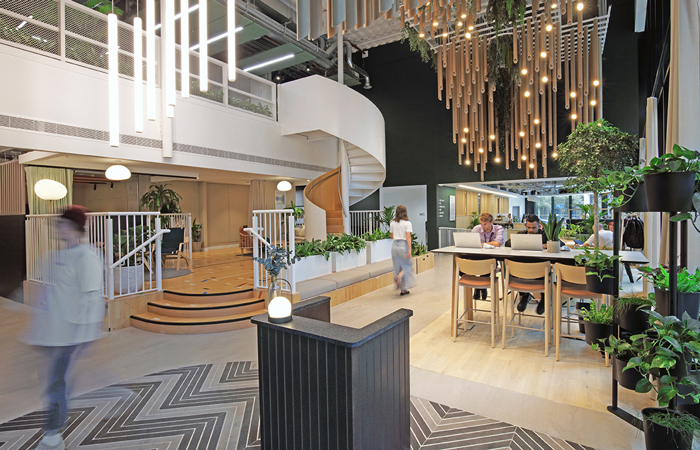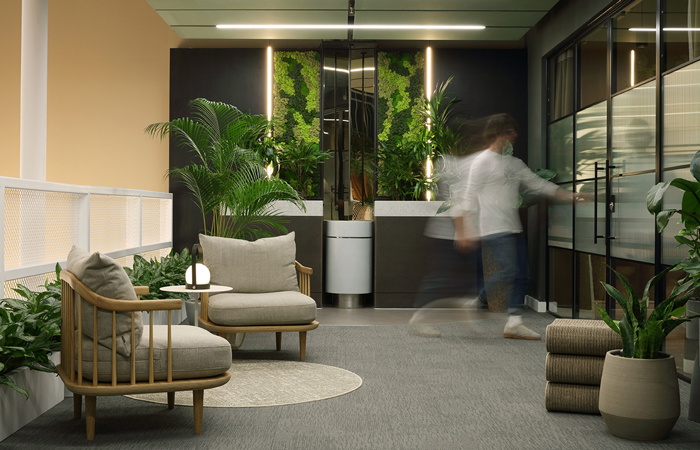 The key design concept was ‘flourish’, directly inspired by the façade’s live planting, and relating to both sustainability and the wellbeing of all who use the building. When it came to sustainability, the designers sought to feature a selection of reclaimed, low VOC and carbon-conscious materials.