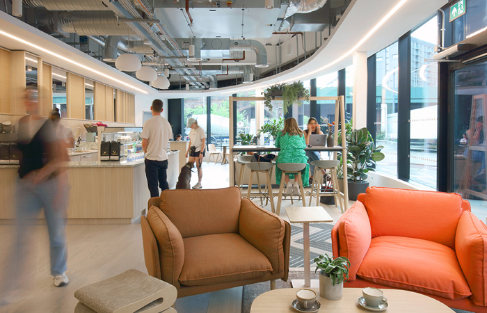 The café space – now operated by local operator Spice & Grind – holds the key values of the building. This is a space for giving back to the occupants and the local community by encouraging social interaction. The approach here was for a design with a higher sensory threshold, meaning sights, sounds, and smells are more intensified, giving the space a real buzz.