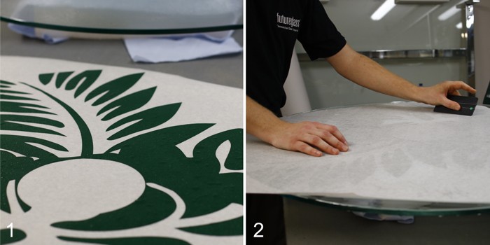 1. We work with the client to produce a design we can integrate into the furniture. We cut a mask and remove areas to be sandblasted.