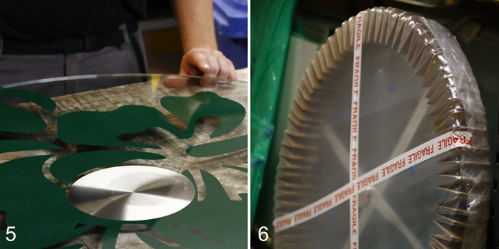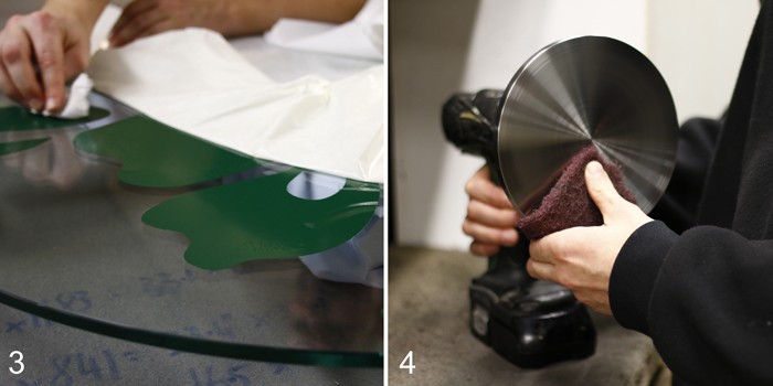 5. Once the boss has been polished and thoroughly cleaned, it is then bonded to the underside of the glass top.