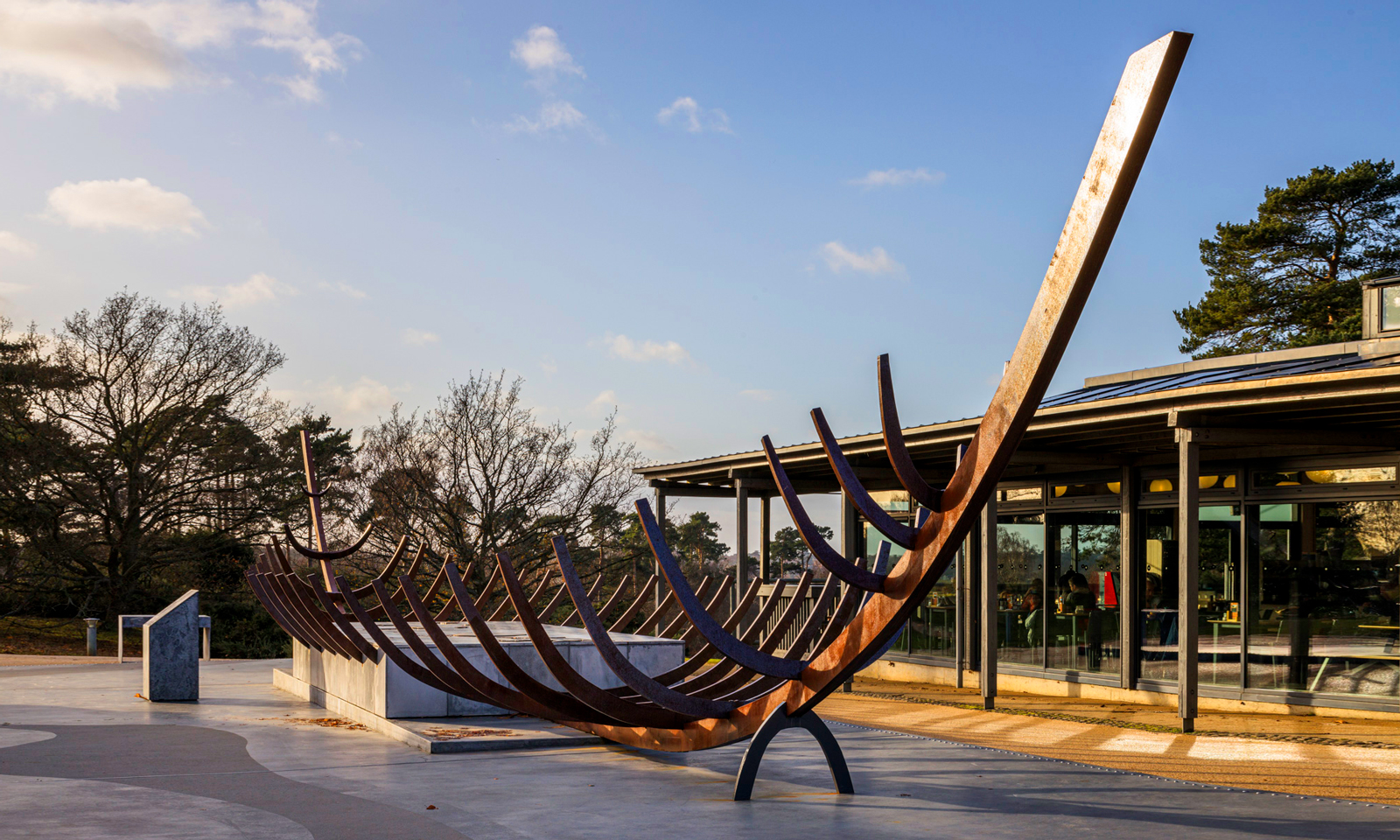 We recently completed Sutton Hoo, where we were engaged to work on the architecture, exhibition, interpretation, and graphic design. The project’s aim was to create an experience where visitors could understand the story behind the Sutton Hoo Scheduled Ancient Monument and Anglo-Saxon burial grounds. This was a tremendously exciting project where the visitor experience ranges from an installation of the burial ship on arrival to Tranmer House, where the site’s archaeology is introduced. Next, the visitor taken through the landscape, walking the same route the funeral procession would have walked, whilst a new tower at the edge of the burial ground means views connect the water where the ship would have arrived with the final burial ground, before a final exhibition telling the fuller story and setting the scene for the objects discovered. The story behind the discovery is about to be released as a film called ‘The Dig’, starring Ralph Fiennes and Carey Mulligan.