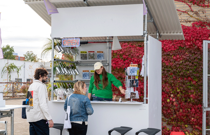 During the event, the SPACE FOR NARRATIVES team introduced a kiosk at the entrance from which they hosted talks, distributed zines, and invited guests to share their visions for the future by posting them through a letterbox. Constructed from readily available scaffold poles and recycled plastic sheets supplied by Polygood, the kiosk typifies the collective desire to explore “The capability of design in making theories and abstract concepts tangible – and transferring them into everyday life.”