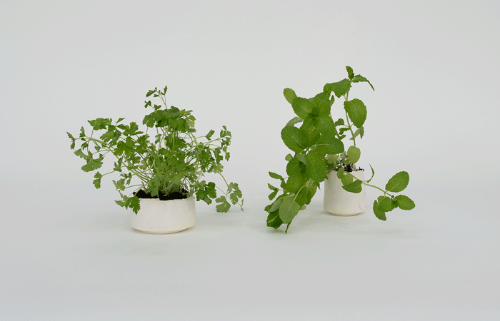Lilli Seiler’s Eggshell Plant Pot project also seeks to tackle soil degradation, but where Weinhold aims to create awareness, Seiler instead hopes to enrich the soil and encourage a broad and healthy array of plant growth. As the title of the project suggests, she intends to do so using food byproducts in the form of eggshells. Rich in calcium and micronutrients such as potassium and magnesium, as well as being formable once ground down, eggshells are an ideal material for creating biodegradable plant pots. The beauty of which being that having diverted waste, they also give back to the earth at the end of their life cycle, thus closing the loop of production.