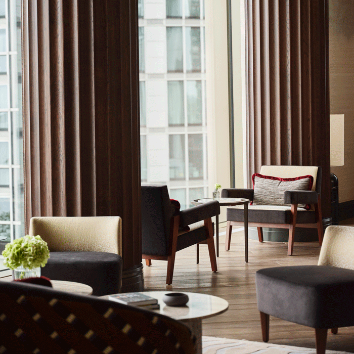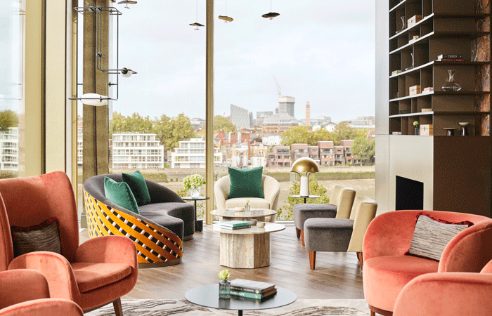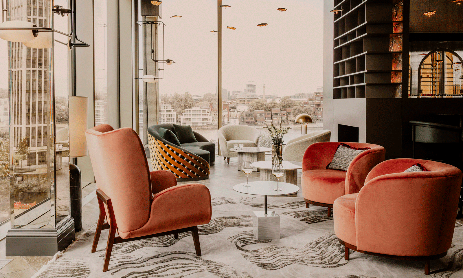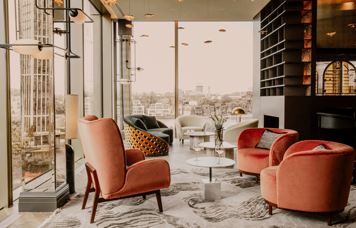 Beyond the arched entrance, guests can enjoy the expansive views from which the space takes much of its inspiration. The ebb and flow of the Thames inspires much of the detailing in this spectacular destination, expressed seamlessly in its exquisite furniture, joinery detailing and architectural forms.