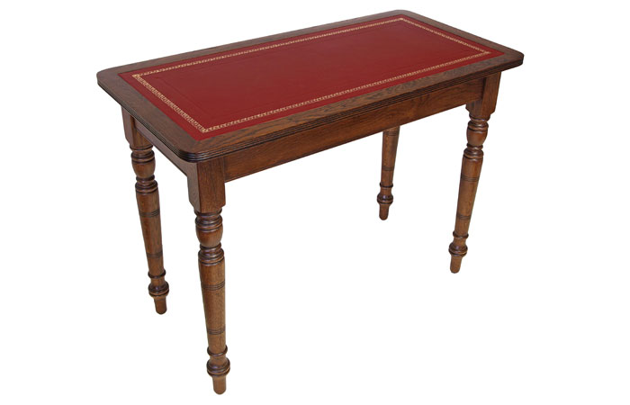 A bedroom desk manufactured in solid oak with tooled and gilded leather insert.