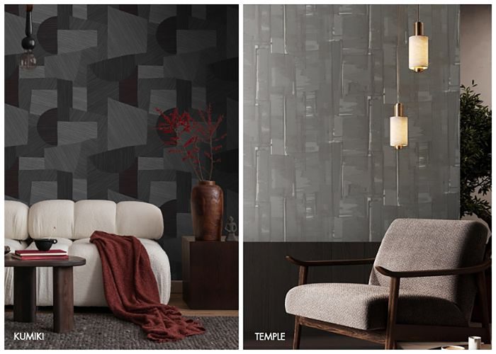 Also featured is Temple, a design that plays with shadow and light for a painterly effect. Temple reminds us of soft shafts of light and veiled windows. This subtle abstract creates movement and depth.